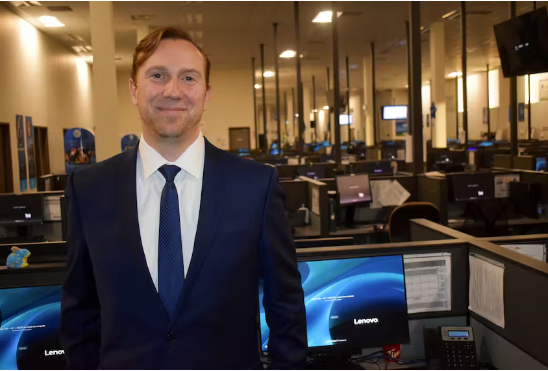 CEO, Anthony Marlowe, standing next to B2B department.